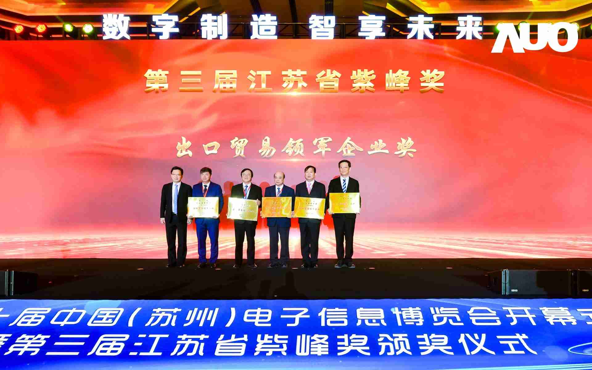 电博会开幕式当天也是第三届江苏省紫峰奖颁奖仪式,,,,省台办、、工信厅、、、商务厅、、苏州市相关领导均出席并颁奖。。该奖项为表彰对江苏高质量发展做出积极贡献的在苏企业,,,,由江苏省政府专门设立。。。传奇国际光电 (苏州) 总经理郭振明代表上台领奖,,,,这也是传奇国际苏州连续三次蝉联紫峰奖 出口贸易领军企业奖。。。传奇国际数位总经理赵丽娜女士,,,也参与本次开幕式,,,上台为本地化赋能签署战略合作协议,,,将优质服务资源集合、、、、下沉到更多细分行业,,,,为更多地区的制造企业提供数字化转型服务。。。。
