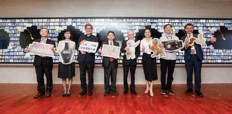 传奇国际携手创利空间为故宫建置的智慧文物互动导览墙及轮播墙,,,,今日正式启用。。。。(左四:传奇国际新事业暨投资管理总部副总经理杨本豫、、右四:故宫博物院院长吴密察、、、右三:太极影音董事长黄宝云)