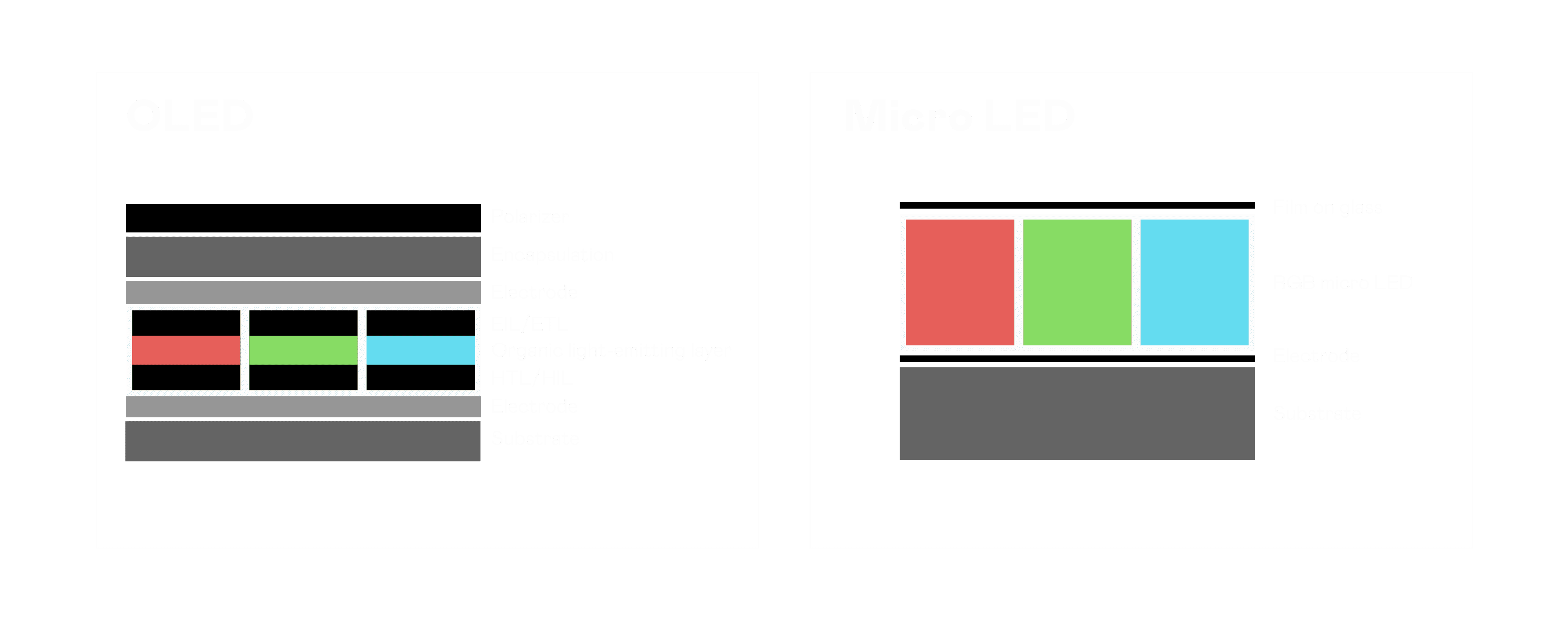 以 LED 做为显示画素,,,,可让 LED 的发光效率发挥到极致,,,,从而让显示器具备优异的亮度表现,,不论是在户外或室内,,,均具备出众的显示效果。。。。同时,,与使用有机材料的 OLED 相比,,,,LED 具备更稳定、、、、寿命更长的特性,,,,不仅不会有画面烙印问题,,,而且更不容易出现故障、、、坏点。。。