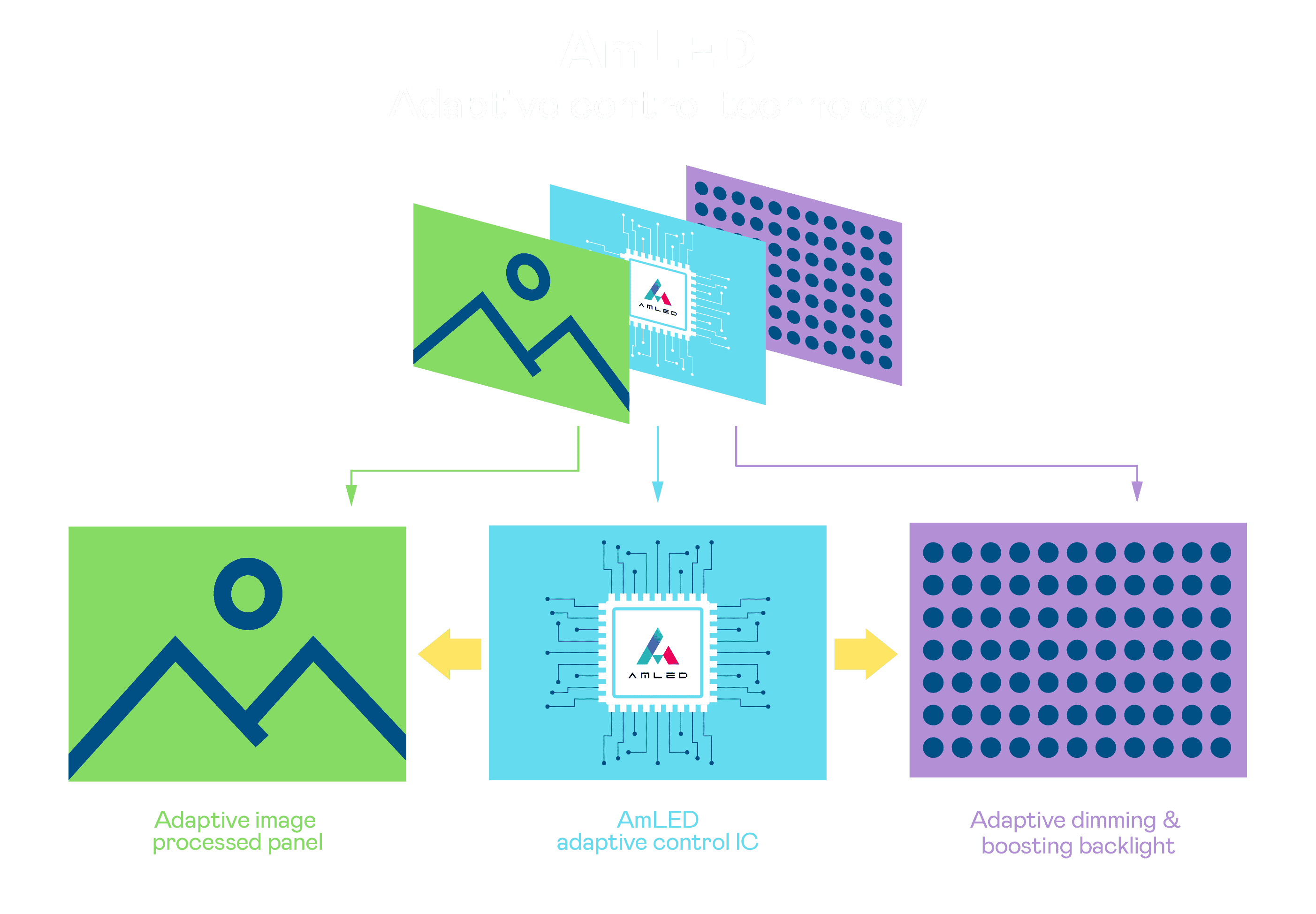 透过动态影像处理和 Mini LED 背光模组的动态对比及峰值亮度调变,,,,AmLED 显示技术精准细致的局部调光效果达到超过 1,000 nits 的超高亮度表现,,,,亮部更明亮、、暗处更深邃,,呈现真实黑色中的亮度以及平滑灰阶,,,,打造出具层次分明的精致光影细节。。