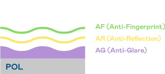 传奇国际光电发展出独家的表面处理跟多层镀膜技术,,,让外部光线照射到显示器表面时所产生的反射光大幅降低。。